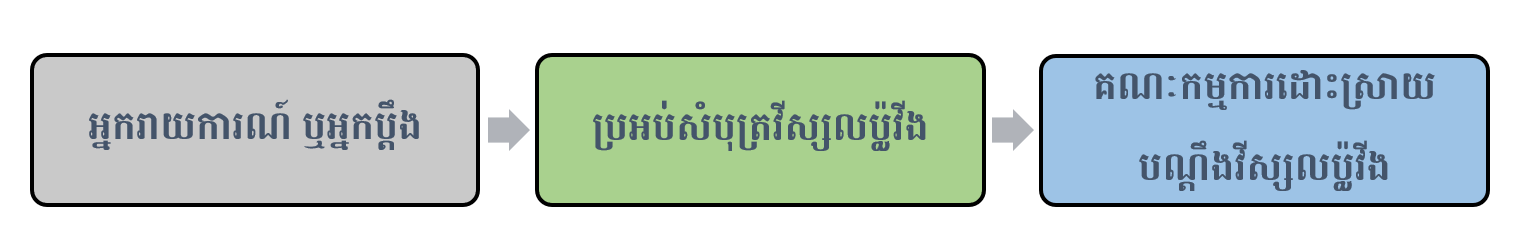 - នីតិវិធីទី២: ការរាយការណ៍មកកាន់គណៈកម្មការវីស្សលប្ល៉ូវីង តាមរយៈ